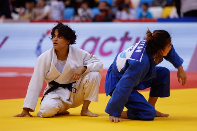 Uke-goshi and a te-waza brought the scores in her first contest, sending Tanzer (AUT) back to the locker room early. Then India’s Asmita Dey put up a good fight but eventually succumbed to a loss on penalties.