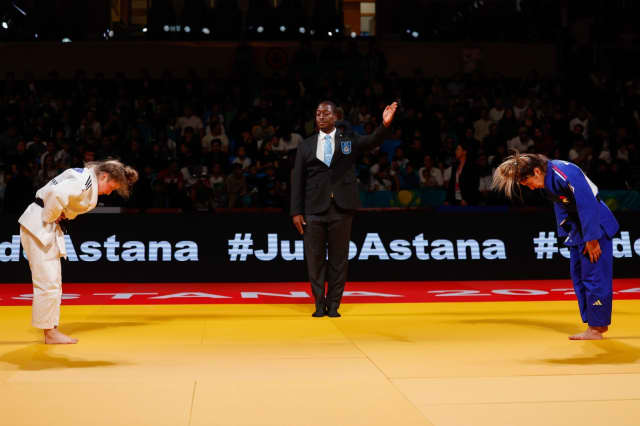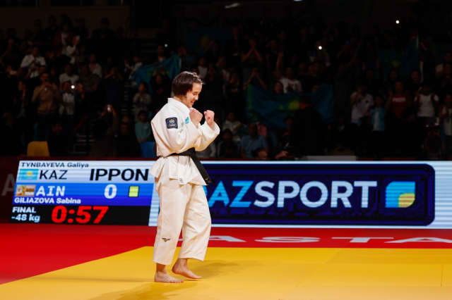 Tynbayeva, riding the wave of support from her crowd, had an uphill climb ahead of her in the Boukli fight but that semi-final seemed to bring her batteries to full charge. The Kazakh didn’t cower for even a second under the French kumi-kata onslaught, finding entries and spaces with great feeling and a powerful resilience. With 6 seconds left on the clock and an otherwise even scoreboard, the two attacked together but a Commission review showed the Kazakh’s ko-soto-gake to be dominant and she was awarded an unchasable waza-ari. Boukli would not top the podium in Astana.