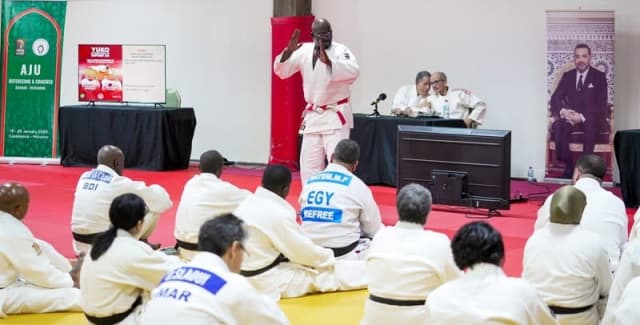 Prior to the first of three days of intense competition in Casablanca, an important refereeing seminar was held. On 22nd January 2026, a high-level referee and coach training session was led by Ababacar Ngom, Head Referee Director of the African Judo Union, Khaled Anwar, AJU Referee Director, and Jean-Claude Djimbi, IJF Referee Supervisor and Olympic referee.