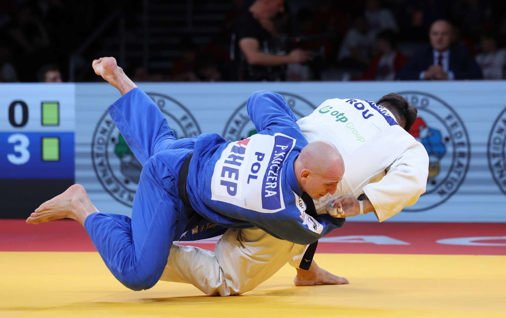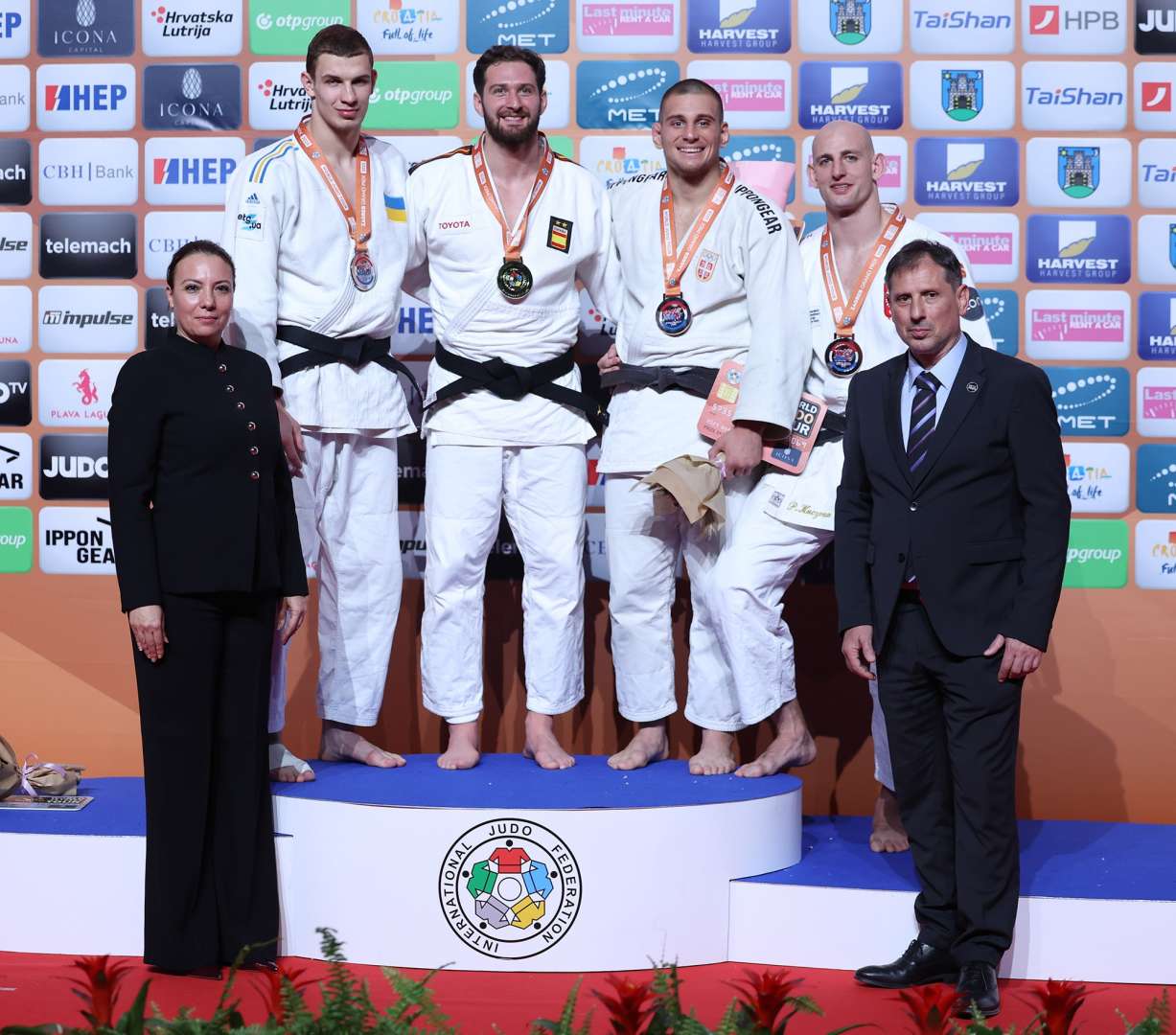 The final saw Nikoloz Sherazadishvili (ESP) and Oleksii Yershov (UKR) step on to the tatami of the Zagreb Arena to rousing applause. Sherazadishvili, always patient, set the grips and set them again until he had them exactly right and then went for the seoi-otoshi, an unusual choice for one of the tall men of judo. It scored a yuko, one he would work hard to protect. A frustrated Yershov left with a silver medal, Spain claiming the top prize.