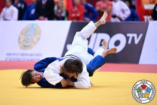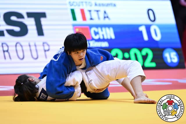 The final saw Xinran Hui and Sabina Giliazova (IJF) under the spotlights, the former delivering a comprehensive barrage which was impossible for Giliazova to match. A series of seoi-otoshi attacks followed up powerfully on the floor gave Hui the win and a first grand slam gold.