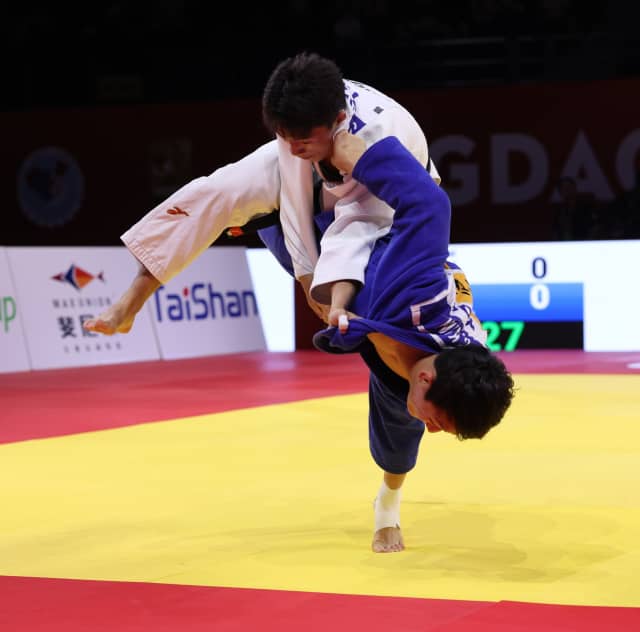 Three minutes later, already a significant way into golden score and the sc orebaord had not changed. The whoops and cheers from the crowd puctuated the action as near-miss after near-miss, in both directions, thrilled everyone in the arena. Then, one minute later it was decided. Yondonperenlei took a deep grip over one shoulder and pulled Dzhebov on to an inescapable tsuri-goshi. The score was only yuko but in golden score that is always enough. This is the 31-year-old’s 12th grand slam medal but only his second gold. Congratulations to Baskhuu Yondonperenlei and Mongolia.