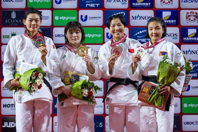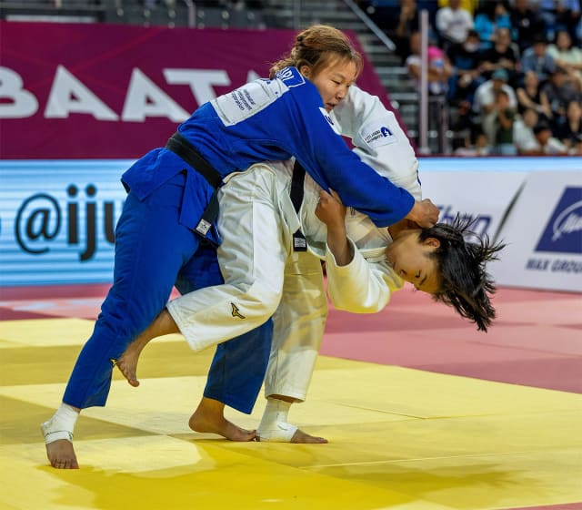 In the second bronze medal contest Yuhui Darkhanbatbayar (MGL), clearly nervous, despite her teammates’ success at -63 kg and -73 kg, stepped up to face another Mongolian athlete, Nyam-Erdene Batsuuri. Both are 19 years old, neither has a World Judo Tour medal but today that will change for one of them.