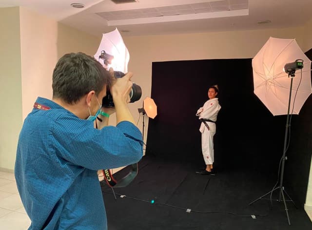 The studio shoots are not only for the sportsmen but also for the members of the IJF, including staff, coaches, doctors, physiotherapists, etc. Then, their photos differ from the athletes' pictures, being more formal, like in a passport. They are used for documents, accreditation cards and important papers.