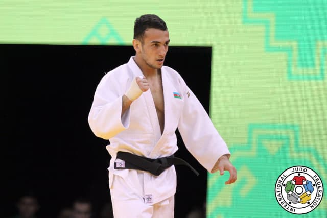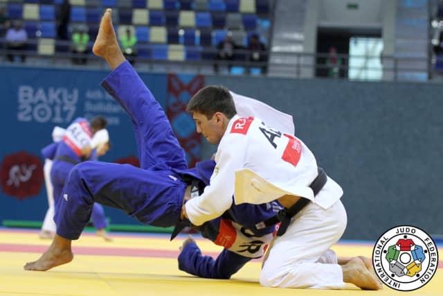 Islamic Solidarity Games 2017 Ambassador Rustam ORUJOV (AZE) with the top -73kg prize on the line. The 19-year-old world number five repeated his Paris Grand Slam win over world leader ORUJOV by osaekomi as he moved from yoko-shiho-gatame to kami-shiho-gatame and his older teammate was powerless in his attempts to escape.