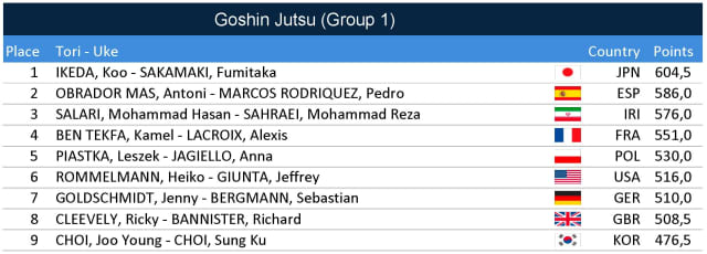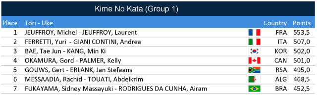 Full results of the day 1 of the Judo Kata World Championships, Chungju, South Korea, 4 - 5 September 2019.